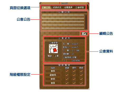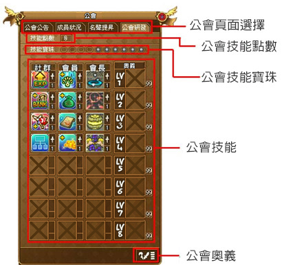 當公會的名聲達到升級條件,會長即可找『公會管理天使』繳交升級所需遊戲幣,以及公會魔晶石後即可升級。
