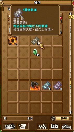 物品等級109級以下的裝備,修復回耐久度、耐久上限值。 |