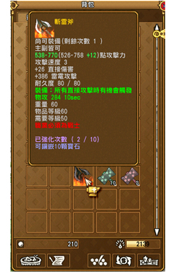 物品等級39級以下的裝備,重新打造綠字隨機屬性,星等越高、出現額外屬性的機率越高。 |